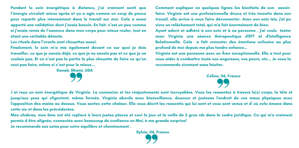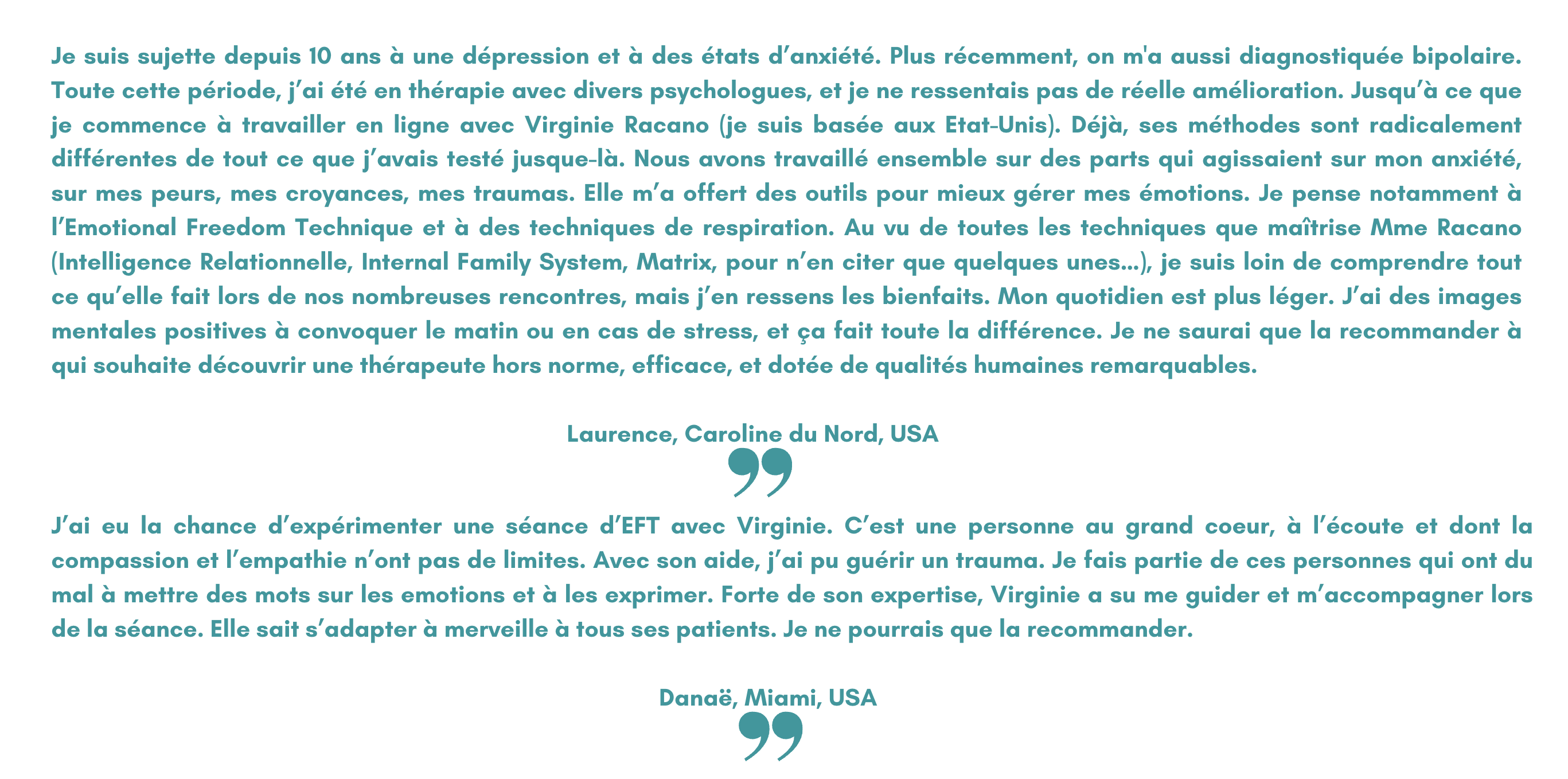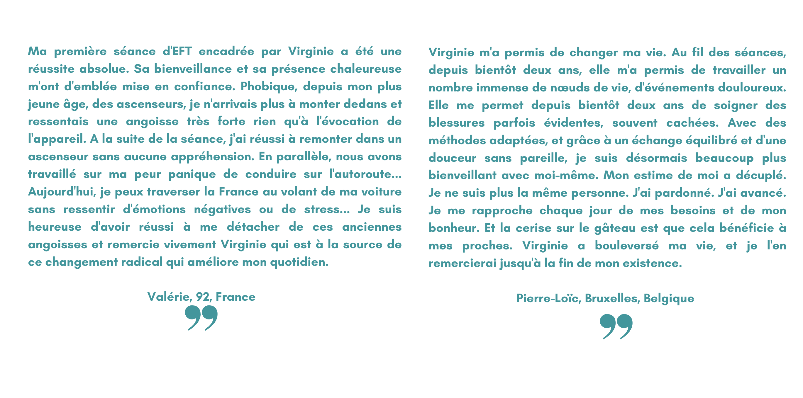 - Formation en Emotional Freedom Technique (EFT), en Matrix Reimprinting, en Loi d’attraction, en Etat Modifié de Conscience (EMC)
